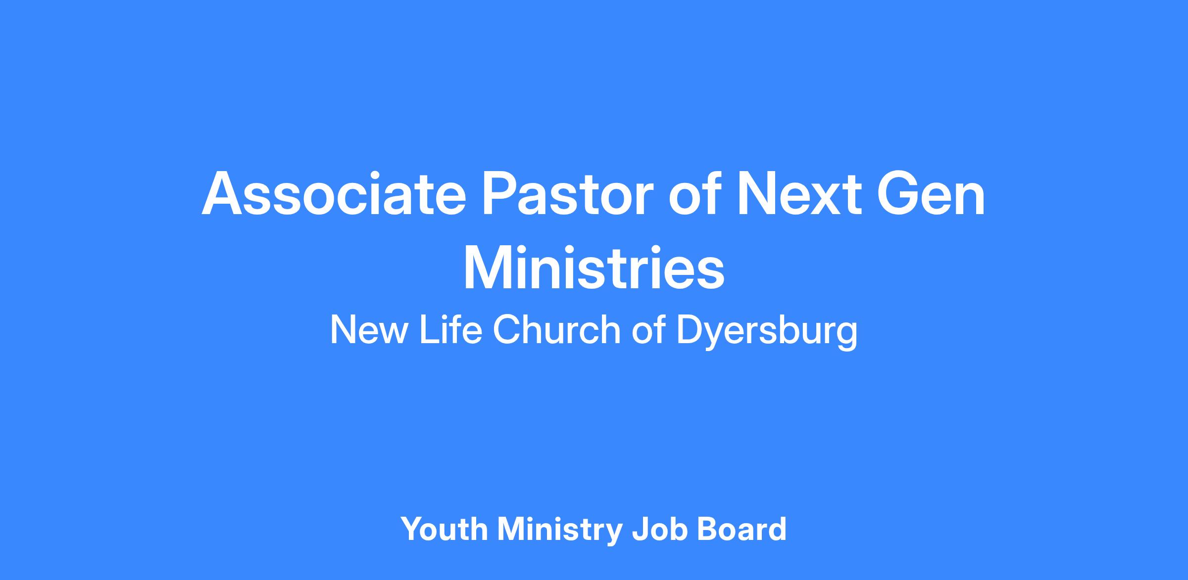 Discover a fulfilling opportunity as the Associate Pastor of Next Gen Ministries at New Life Church of Dyersburg in Dyersburg, Tennessee. Lead and nurture youth and young adults by coaching ministry teams, developing Bible-based curriculum, and fostering a vibrant Young Adult ministry. From overseeing worship events to providing pastoral care and equipping future leaders, this role is ideal for a candidate with a strong commitment to Christian faith, effective communication skills, and a passion for disciple-making. Join a community that values Biblical Authority, Relational Evangelism, Actively Worshipping God, Intentional Serving, and Doing Life Together to empower individuals in their faith journey and make a lasting impact.