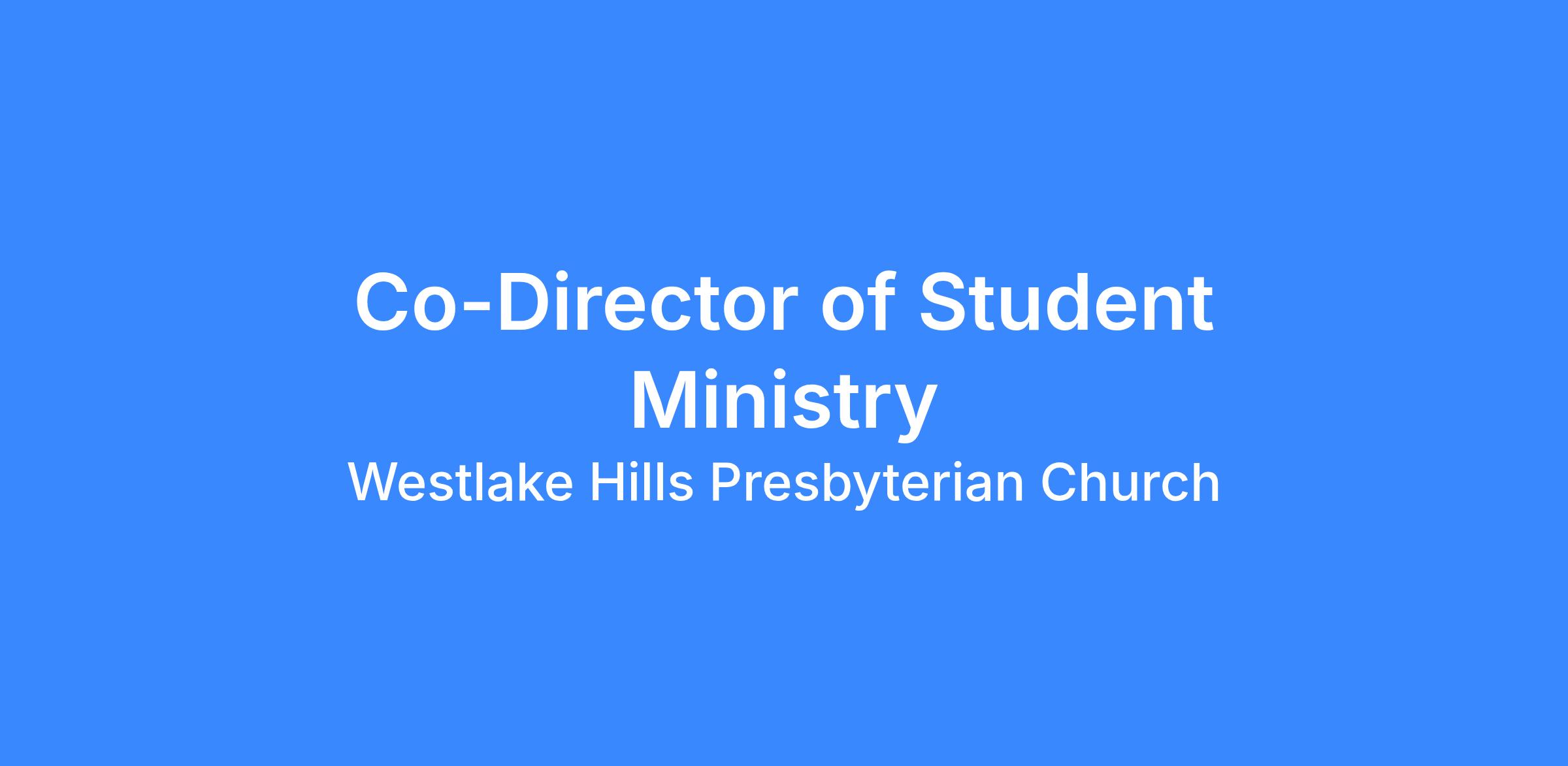 The Co-Director of Student Ministry provides collaborative leadership for middle and high school students at Westlake Hills Presbyterian Church (WHPC). This role focuses on building meaningful relationships with students and helping them grow in faith, identity, and community.