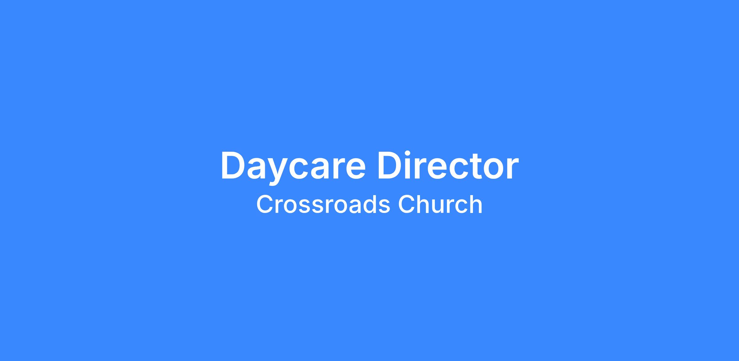 Crossroads Church is seeking a highly organized, assertive, and driven Daycare Director with proven leadership experience to lead the successful launch and ongoing management of our new daycare center. Once established, the Director will provide strategic leadership, administrative direction, and comprehensive oversight of the church’s daycare ministry. This role ensures the center is built upon and operates with excellence—spiritually, relationally, and operationally—while maintaining full compliance with all state regulations. The Director will recruit and lead staff, cultivate strong partnerships with parents, nurture children’s development, and uphold the mission and values of the church. This is a foundational leadership position, and the selected candidate will be responsible for developing and implementing the program from the ground up.