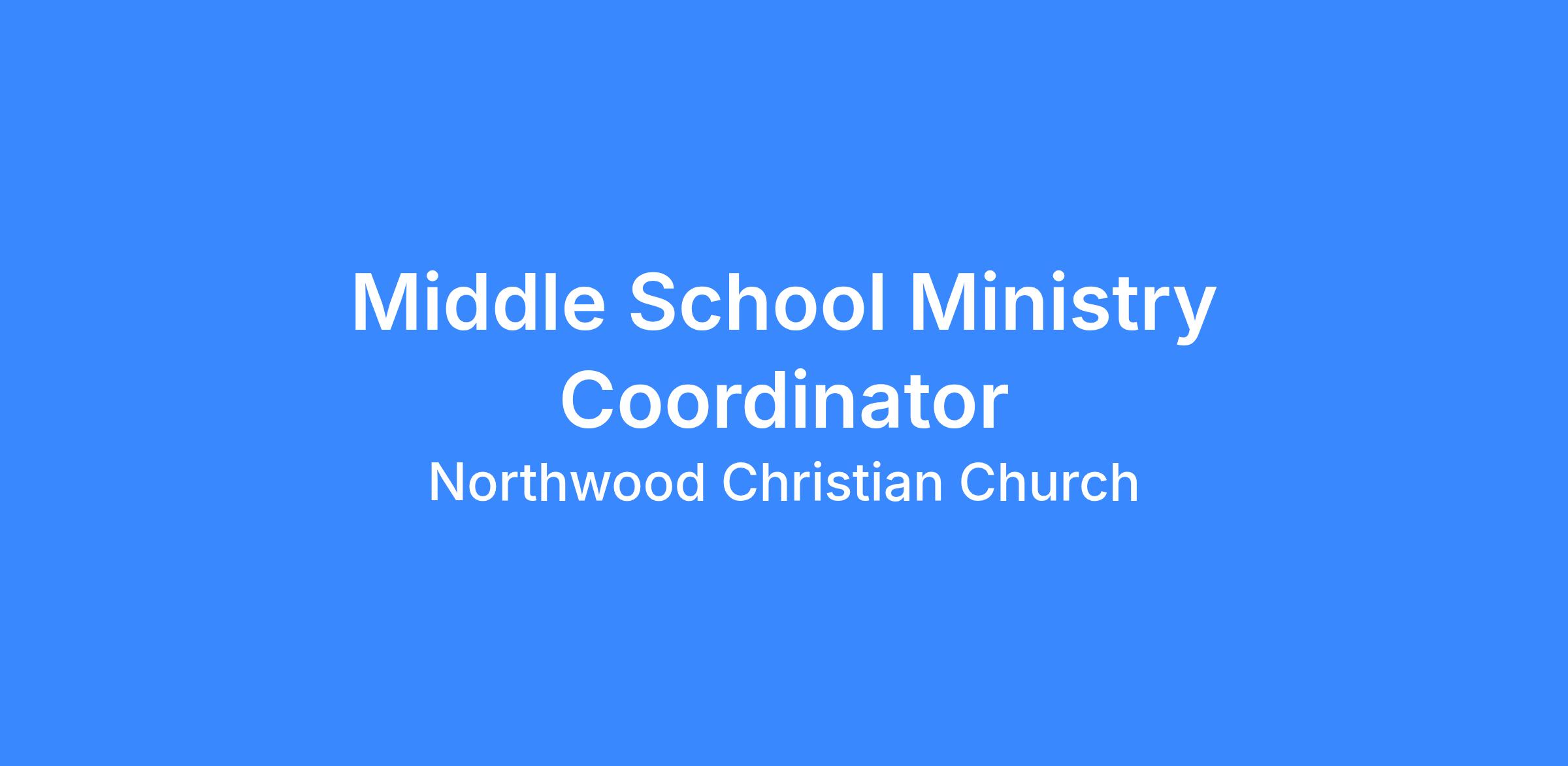Northwood Christian Church is looking for a fun, passionate, relational, and organized leader to join our team as a Middle School Ministry Coordinator (30 hours/week). This role is ideal for someone who loves connecting with young people inside and outside the church, pointing them to Jesus.