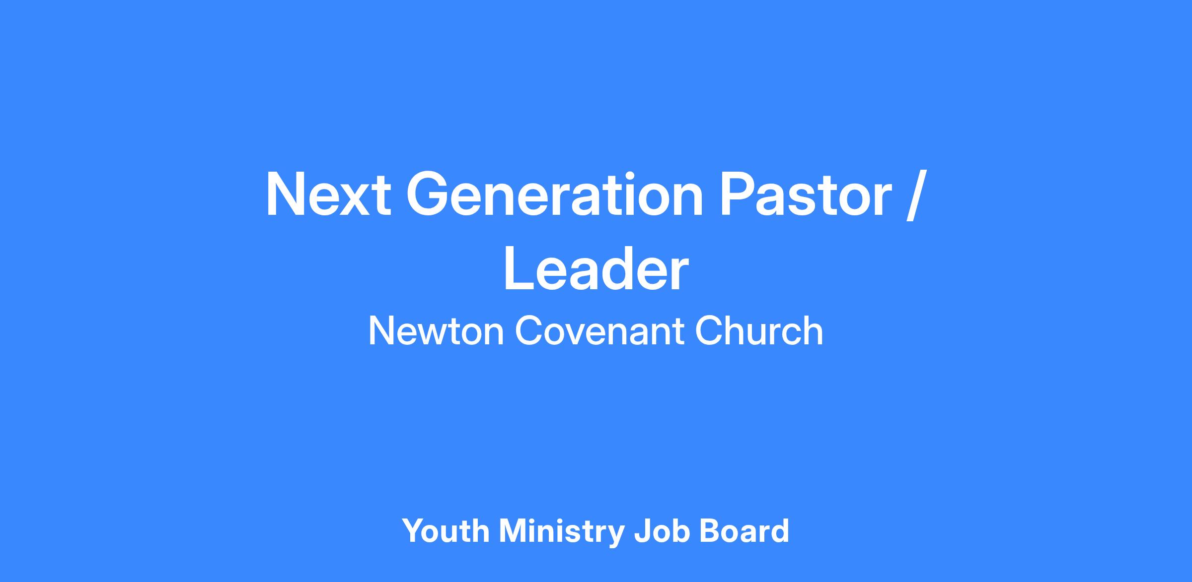 Newton Covenant Church (NCC) is seeking a full-time Next Gen Pastor / Leader to lead the development of its Next Generation Ministry, serving children, youth, and young adults. Depending on the candidate(s), this role could be divided into two part-time roles: Children's Director and Youth Leader. To apply, send your resume and cover letter to info@newtoncovenant.org.
