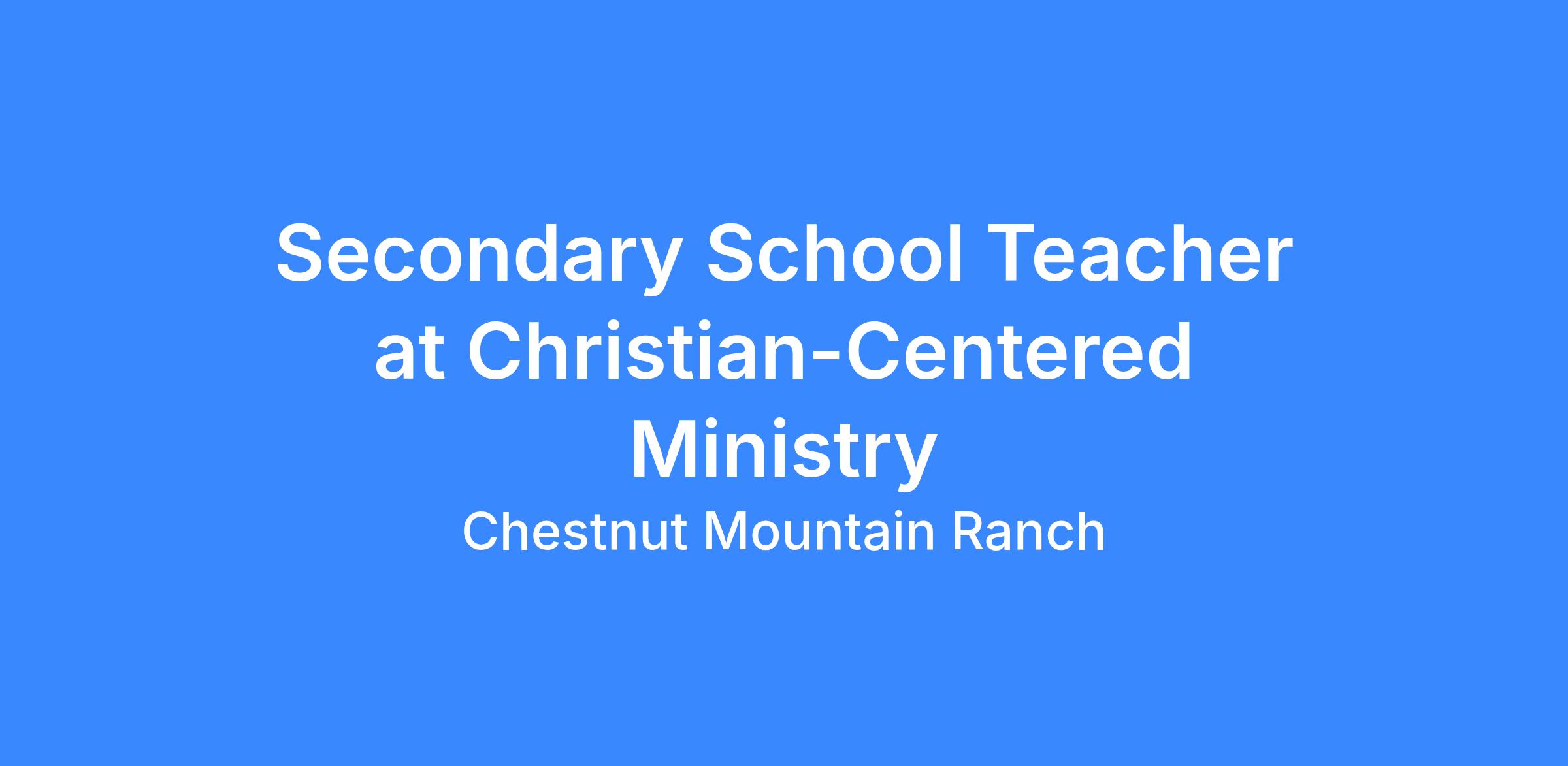 We are seeking a committed Christian educator of high moral and ethical character who desires to teach within a distinctly biblical worldview. Teachers provide grade-appropriate instruction while intentionally integrating a Biblical worldview into all areas of learning. They are responsible for assessing student progress, maintaining a structured and supportive classroom environment, and faithfully upholding the standards and philosophy of the Chestnut Mountain Ranch program.