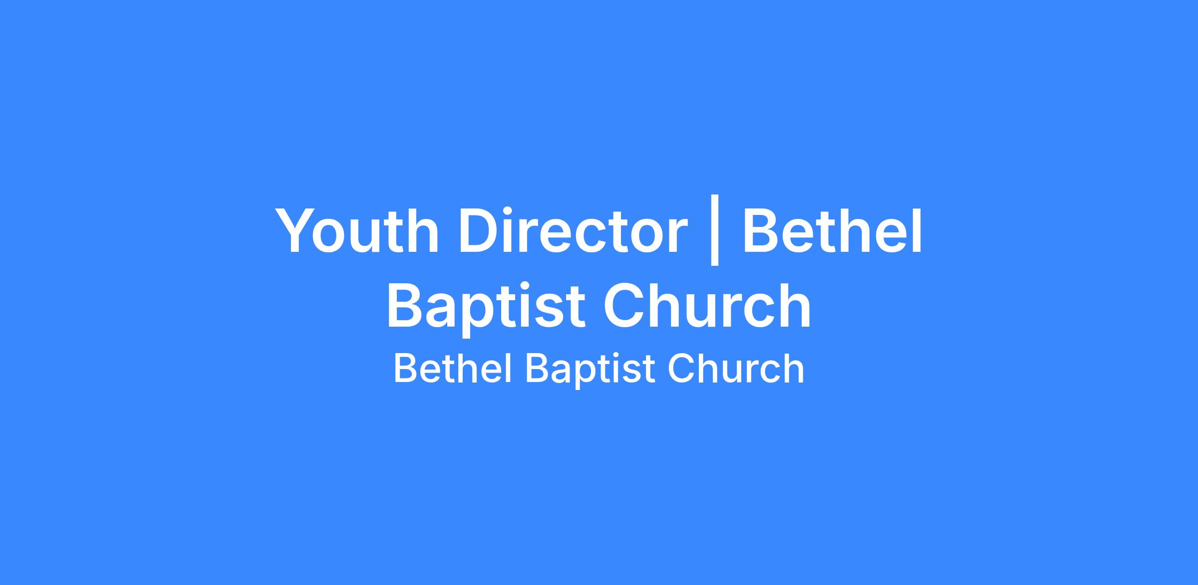 Bethel Baptist Church asks that interested candidates work directly with Chemistry Staffing at this time. Please do not contact the church directly. Thank you!