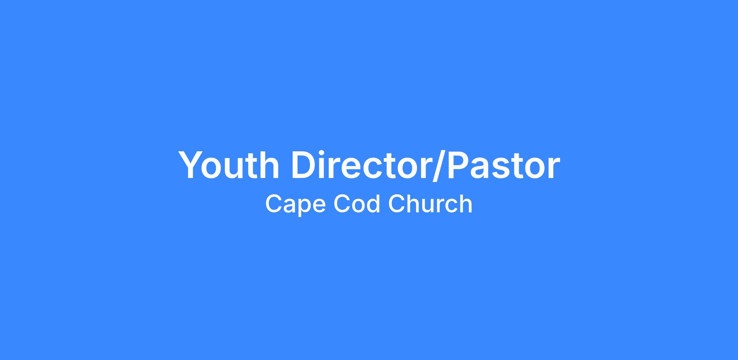 • Youth Director: a full-time position (with benefits) overseeing our youth department, and on a path to pastoral licensure through Cape Cod Church. Best suited for candidates with 1-3 years ministry experience. Reports to: Executive Pastor.