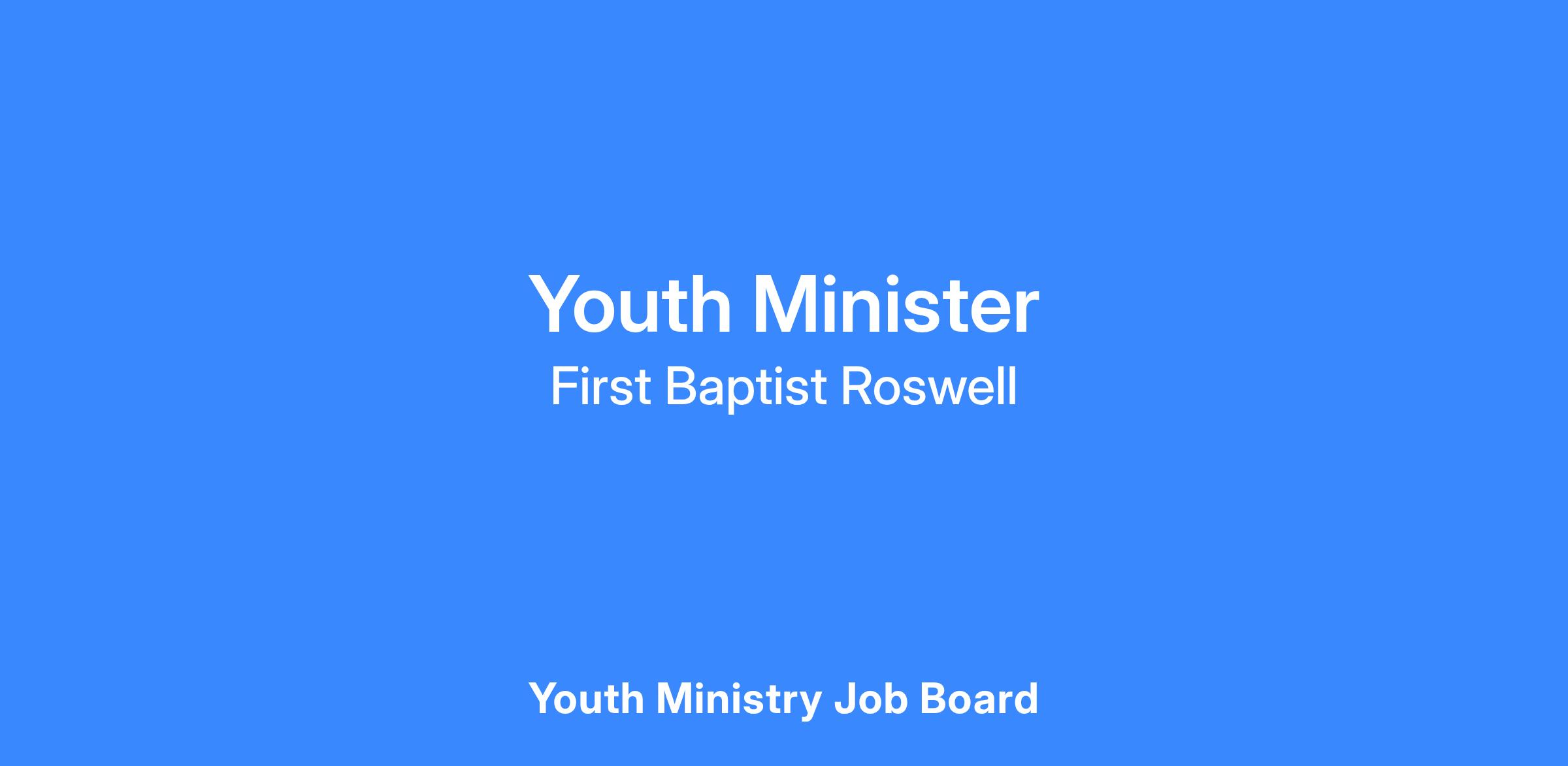 First Baptist Church of Roswell, Georgia, is seeking a creative, energetic, and Christ-centered Minister to Youth to lead a vibrant ministry for students in grades 6–12 and college. In this role, you’ll help to create a welcoming, relational environment where every teen feels known, loved, and encouraged to follow Jesus. You’ll work alongside a team of volunteers to plan and lead weekly gatherings, Bible studies, retreats, camps, mission trips, and special events that help students grow in their faith and live it out in real ways.